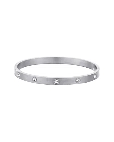 Silver Plated Stainless Steel Tarnish-resistant Plated Crystal Eternity Cuff Bracelet In Brown