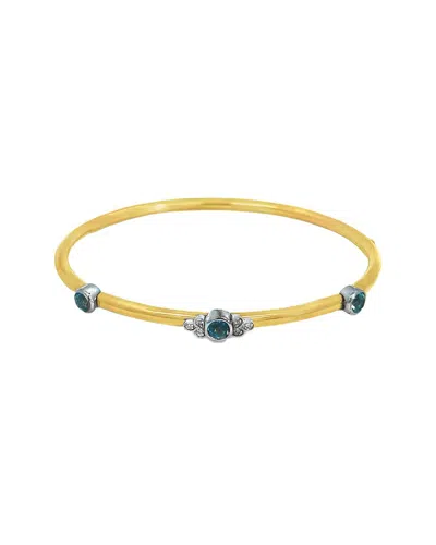 0.93 Ct. Tw. Diamond & Blue Topaz Silver Bangle In Gold
