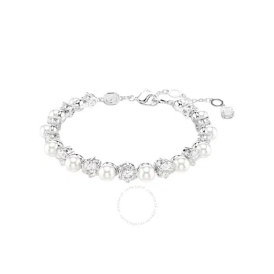 Crystal Cultivated Pearl Round Cut Tennis Bracelet In Silver