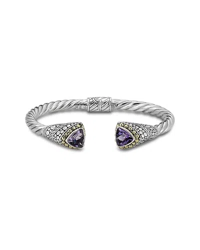 18k & Silver 5.60 Ct. Tw. Amethyst Cable Bangle Bracelet In Metallic