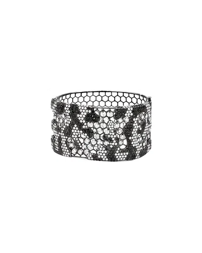 18 Kt White Gold Rhodium Plated Diamond Bangle In Black