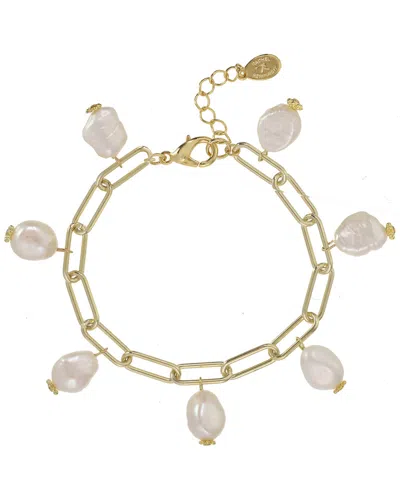 14k Over Silver 10-13mm Pearl Paperclip Bracelet