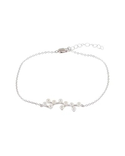 Silver 10mmmm Pearl Cz Bracelet In Metallic