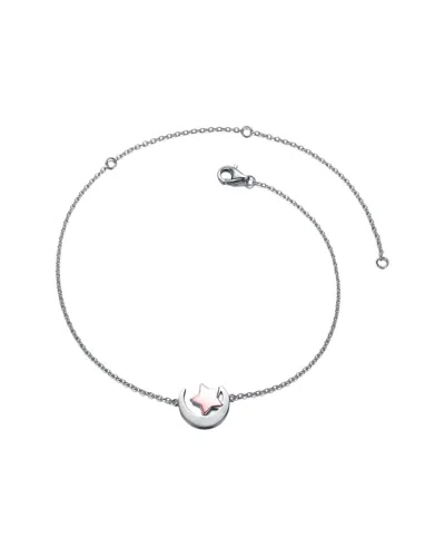 Silver Cz Lucky Star & Crescent Moon Charm Ankle Bracelet