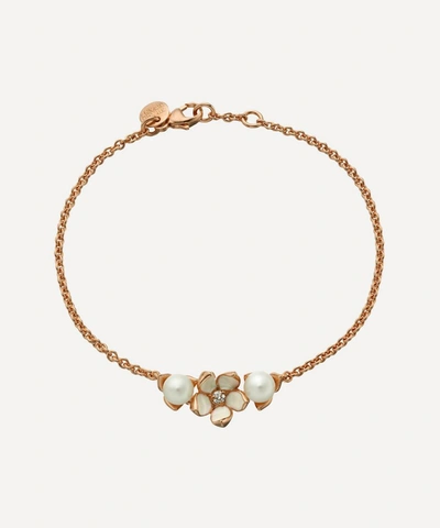 Rose Gold Plated Vermeil Silver Cherry Blossom Diamond Flower And Pearl Bracelet