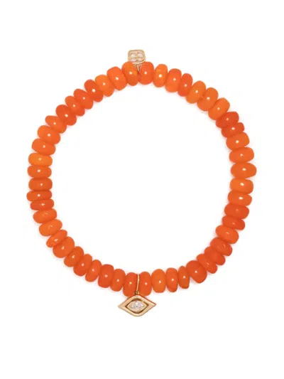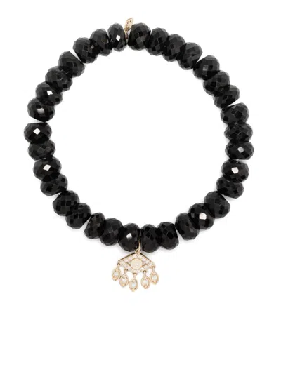 14k Yellow Gold Small Teardrop Evil Eye Diamond Beaded Bracelet In Black