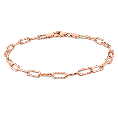 Fancy Paper Clip Chain Bracelet In 18k Rose Gold Plated Sterling Silver In Rose Gold-tone