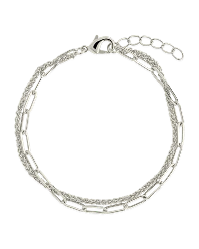 Emery Layered Paperclip & Curb Chain Bracelet In Silver