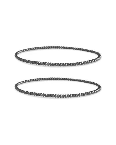 Silver Beaded Stretch Bracelet Set In Metallic