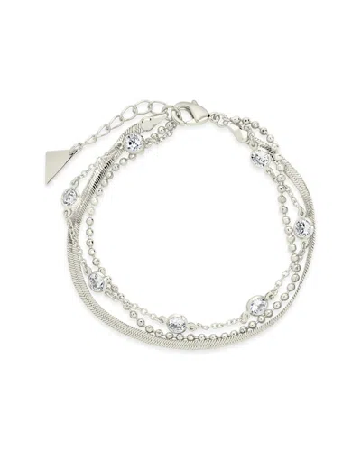 Silver Cz Paisley Layered Chain Bracelet In Metallic