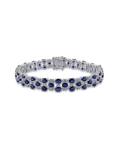 Sterling Silver Sapphire & Diamond Heart Station Bracelet In Blue