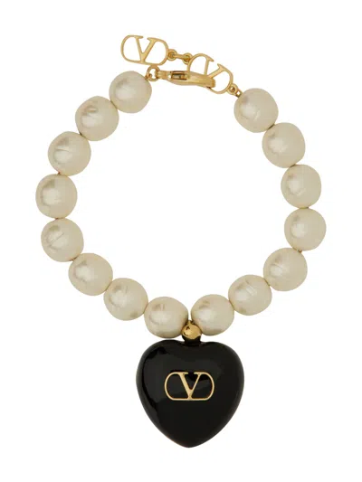 Logo Chain Link Bracelet With Pearl Detail In Gold
