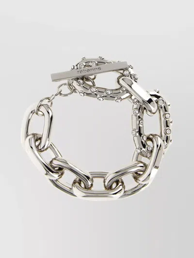 Logo Lettering Crystal Embellished Bracelet In Gold