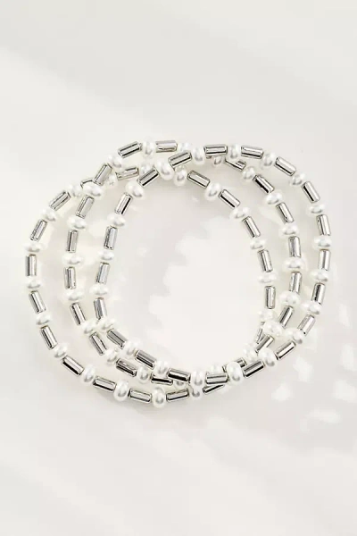 Pearl Beaded Bracelets, Set Of 3 In Metallic