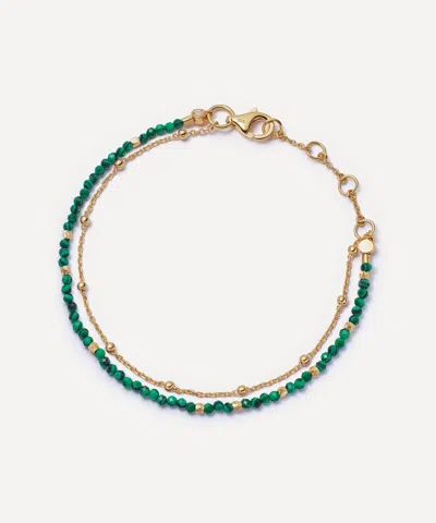 18ct Gold-plated Vermeil Silver Fine Biography Malachite Bracelet In Multi