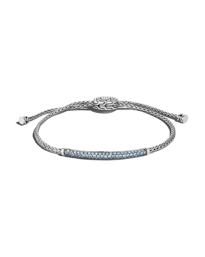 Silver Treated Swiss Blue Topaz Classic Chain Station Bracelet In Metallic