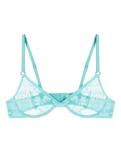 Juliette Satin-trimmed Embroidered Tulle Soft-cup Underwired Balconette Bra In Blue