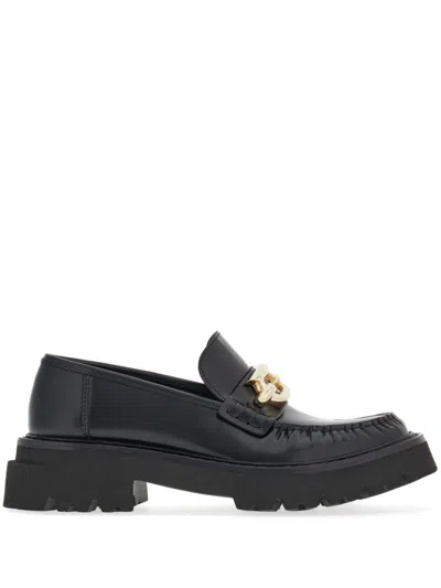 Gancini Buckle Leather Brogues In Black