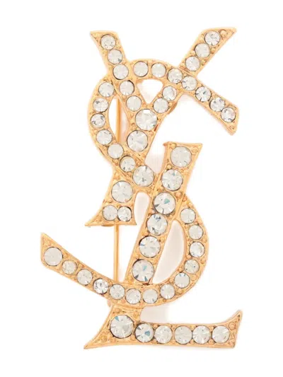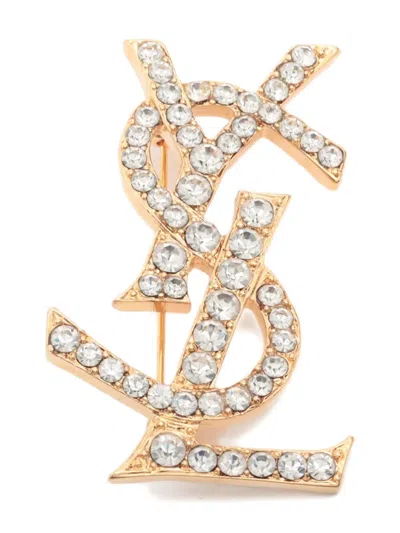 Pre-owned Cassandre Rhinestone-embellished Brooch In Gold