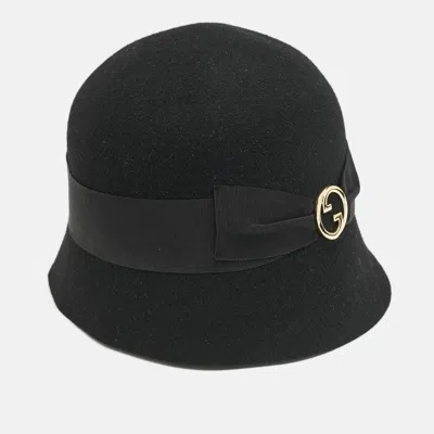 Pre-owned Black Rabbit Felt Gg Bucket Hat M