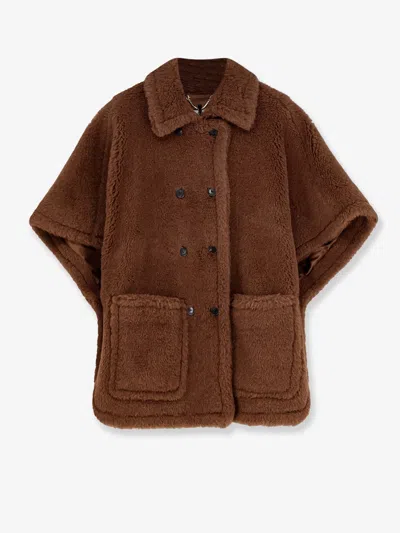 Boxy Cape In Alpaca And Wool Teddy In Brown