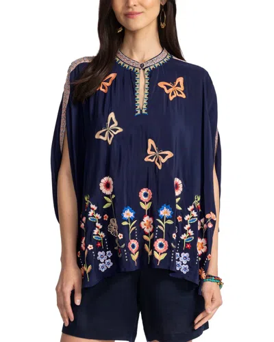 Nuria Silk Poncho In Blue