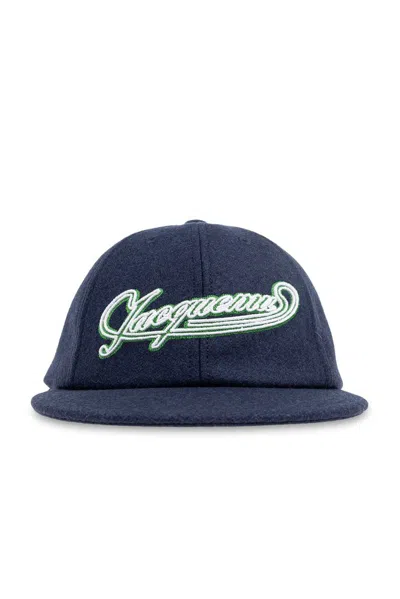 Logo Patch Baseball Cap In Wool-blend In Navy