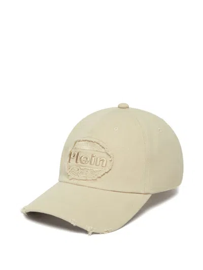 Distressed Plaid Adjustable Baseball Cap In Brown