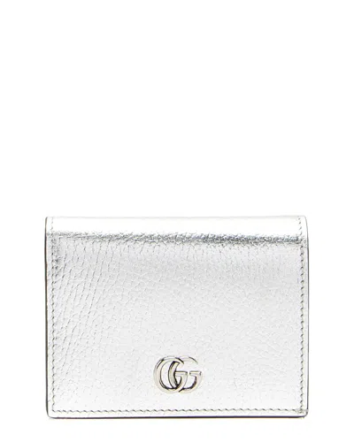 Metallic Leather Gg Marmont Card Case (authentic Pre-loved) In Silver