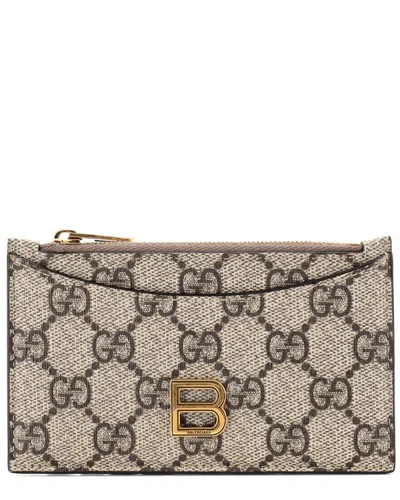 X Balenciaga The Hacker Project Zip Card Case Gg Coated Canvas (authentic Pre-loved) In Brown