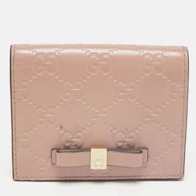 Pre-owned Blush Pink Microssima Leather Bow Card Case