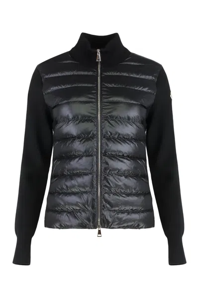 Two-material Cardigan With Goose Down Padding And High Neck In Black