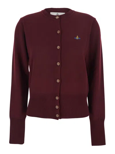 Bea Bordeaux Cardigan With Orb Embroidery In Cotton And Cashmere Woman In Burgundy