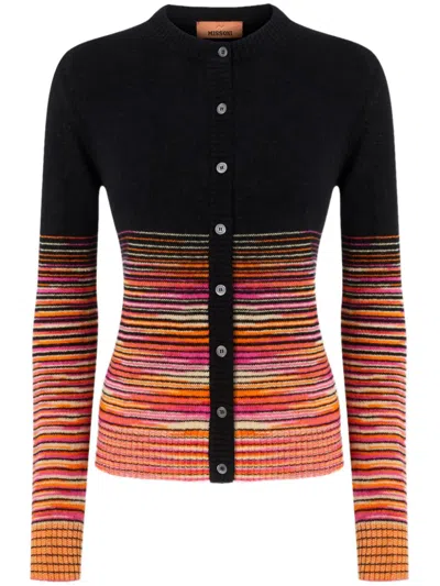 Striped-pattern Sequin-embellishment Cardigan In Black
