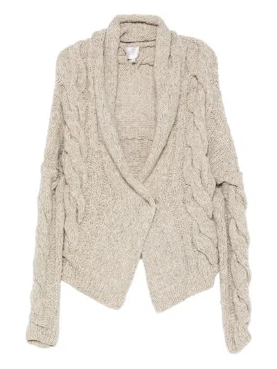Pre-owned Beige Intarsia Wool Blend Cardigan L In Sand