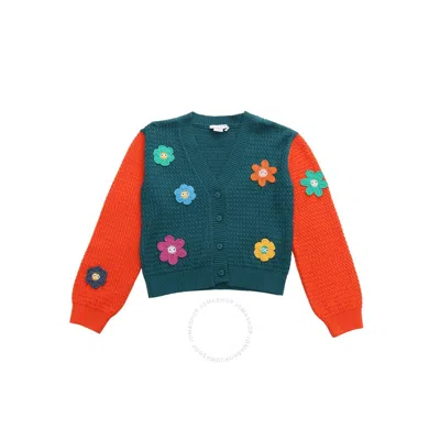 Kids Floral-embroidered V-neck Cardigan In Orange