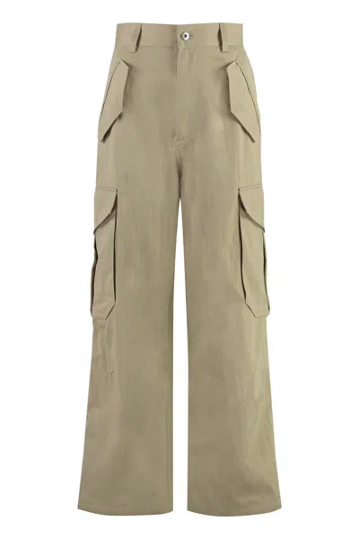 Cotton Blend Cargo Trousers In Green