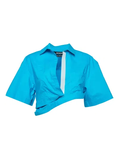 Pre-owned Blue Cotton La Chemise Asymmetric Crop Top M
