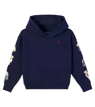 Kids' Polo Bear Cloud-print Terry Hoodie In Scottsdale Blue,splatter Bear