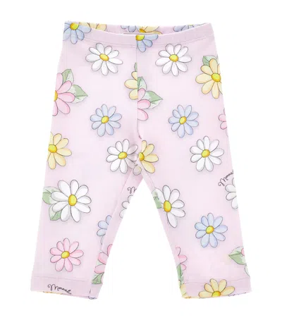 Kids' Stretch-cotton Flower Print Leggings In Pink