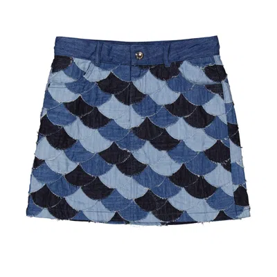 Kids' Chloe Girls Denim Blue Scallop Patchwork Detail Skirt