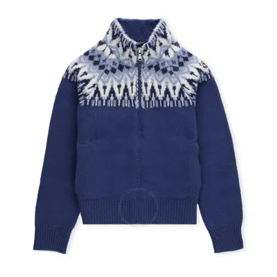Kids' Boys Intarsia-knit Virgin Wool Cardigan In Blue