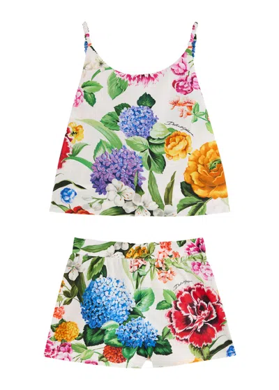 Kids Floral-print Cotton-poplin Set In Multicoloured