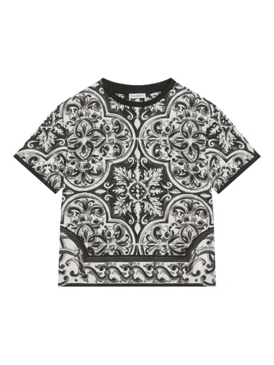 Kids' Majolica-print Short-sleeved T-shirt In Black