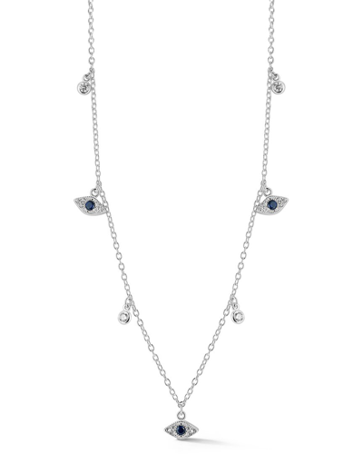 Silver Cz Eye Charm Choker Necklace In Metallic