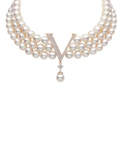 18K玫瑰金淡水珍珠钻石 Y 项圈
