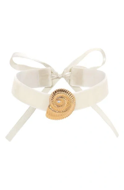 Nautilus Shell Velvet Choker In Beige In White