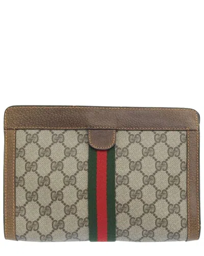 Beige Coated/waterproof Canvas Gg Plus Clutch (authentic Pre-loved) In Brown