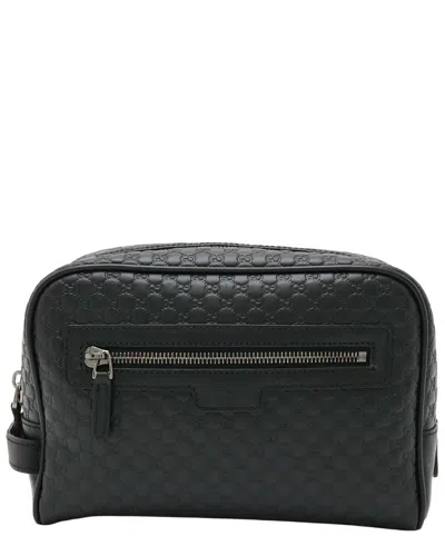 Wristlet Clutch Ssima Leather (authentic Pre-loved) In Black