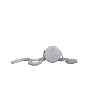 Pre-owned Round Clutch With Pearl Chain White In Default Title